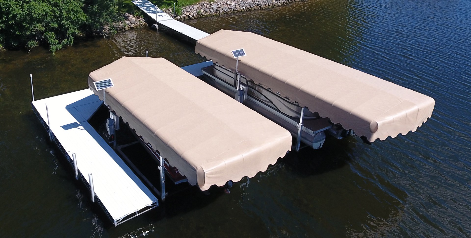 We’ve been manufacturing canopy covers for over 40 years, and we do it right. Not only are our covers double stitched, but all top and middle seams are heat welded to prevent thread rot and water leakage. Our covers are tailor-cut with state-of-the-art CNC equipment to properly fit their frames. Installation and removal is simple with standard tension cords which keep the canopy covers taut. Our covers are available in many sizes and can be designed for other applications as well, including carports, boat slip covers and rail system covers. Whether you are in the United States or Canada, you will be able to find a Minnesota made Hewitt product for your boating needs!
